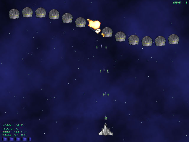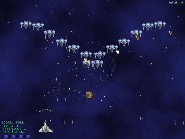 The fate of humanity is in your hands! The Earth is in the danger of being destroyed by a fast spreading alien virus that kills anybody it infects. The only hope is a vaccine that was developed on a remote space station by our scientists. You are now on your way back with the precious cargo on board, when you start to understand that the virus was intentionally introduced. How do you know it? Simple - it seems that everything goes wrong on your way back. First, someone tried to kill you while you were inside the space station. Second, unknown forces tried to sabotage your ship launch, but you found the fuel leakage just in time. Finally, you found a bomb on board. And now this – hordes of UFOs and alien ships are getting more and more fierce as you approach the Earth to save its inhabitant's. Captain, it's not going to be easy, but with some skills and doggedness you can do it. Just keep your thumb close to the Fire button. |